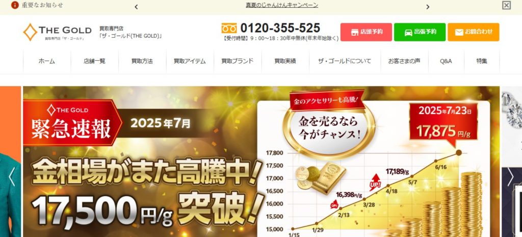 引用元:ザ・ゴールド|貴金属の高価買取(最終閲覧日2025年7月28日)