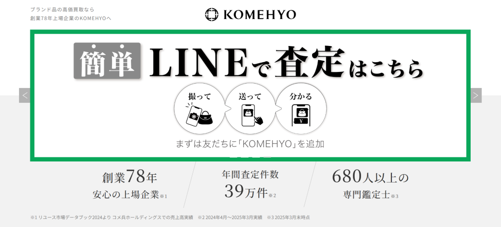 KOMEHYO SHINJUKU | 店舗情報 | 店頭、宅配、出張、LINE | 店頭、宅配、出張 | 無料 | 無料 | 可能 | 可能 | 11:00~20:00 | 株式会社コメ兵ホールディングス | 上場 | 第541162007700号 | |