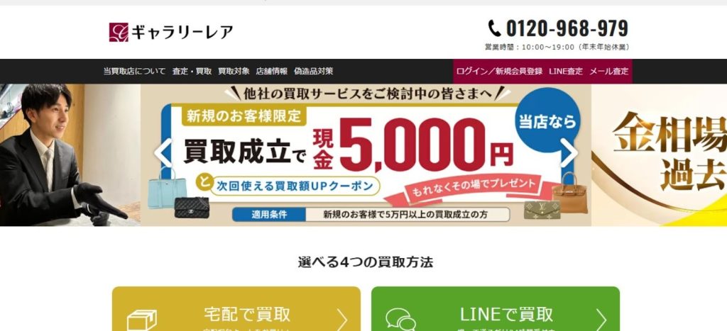 ギャラリーレア 銀座本店店舗情報4.8店頭、電話、LINE店頭、宅配、出張無料無料可能可能11:30~19:00株式会社サークラックス上場第621111601117号