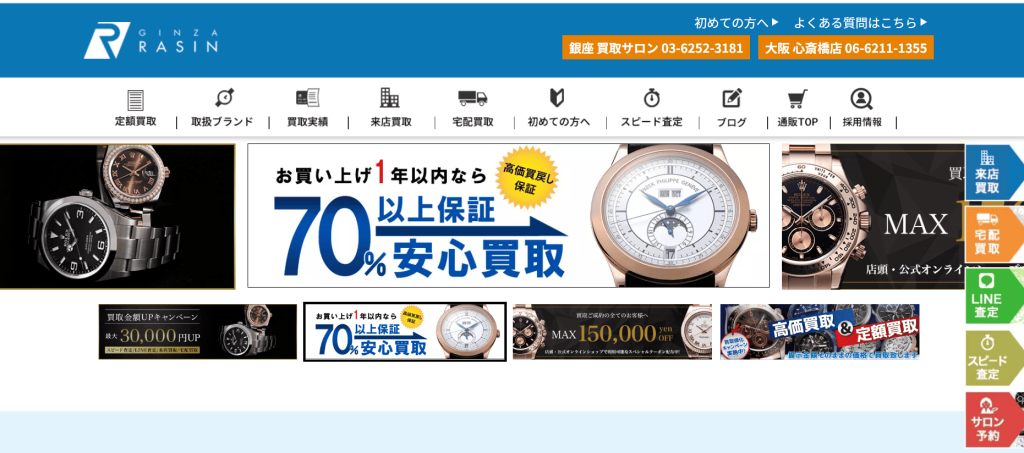 来店買取という方法以外に、宅配買取・LINE査定・スピード査定といった多種多様なサービスを選択可能です。時計専門コンシェルジュに査定を任せたい方は、ぜひGINZA RASINを利用してみてはいかがでしょうか。