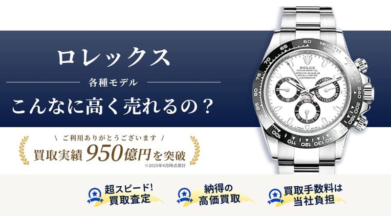 高級時計の買取にも強く、1,000万円を超えるロレックスの査定でも即日現金化に対応している点は大きな魅力です。